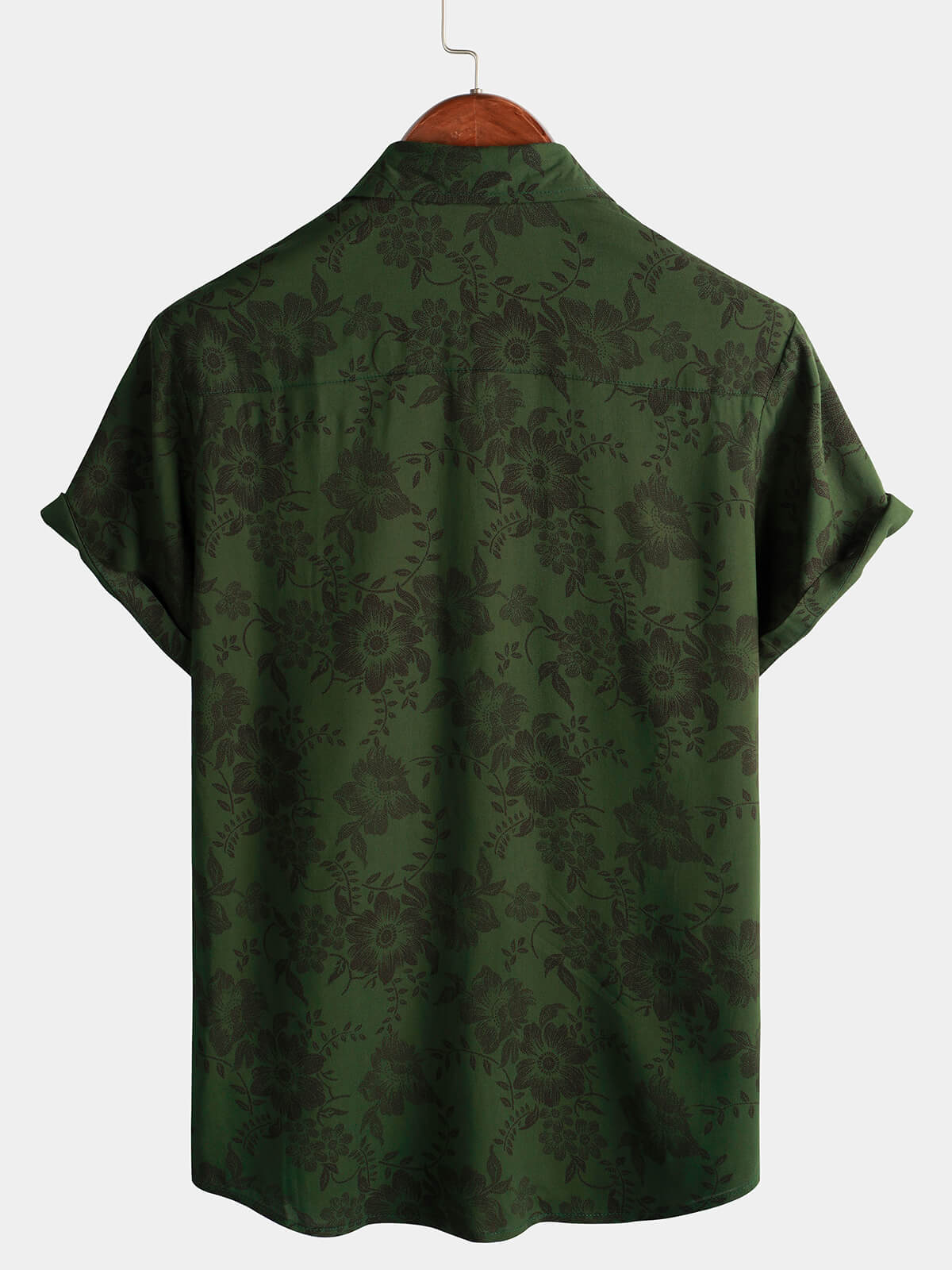 Chemise à manches courtes à fleurs rétro pour hommes des années 70