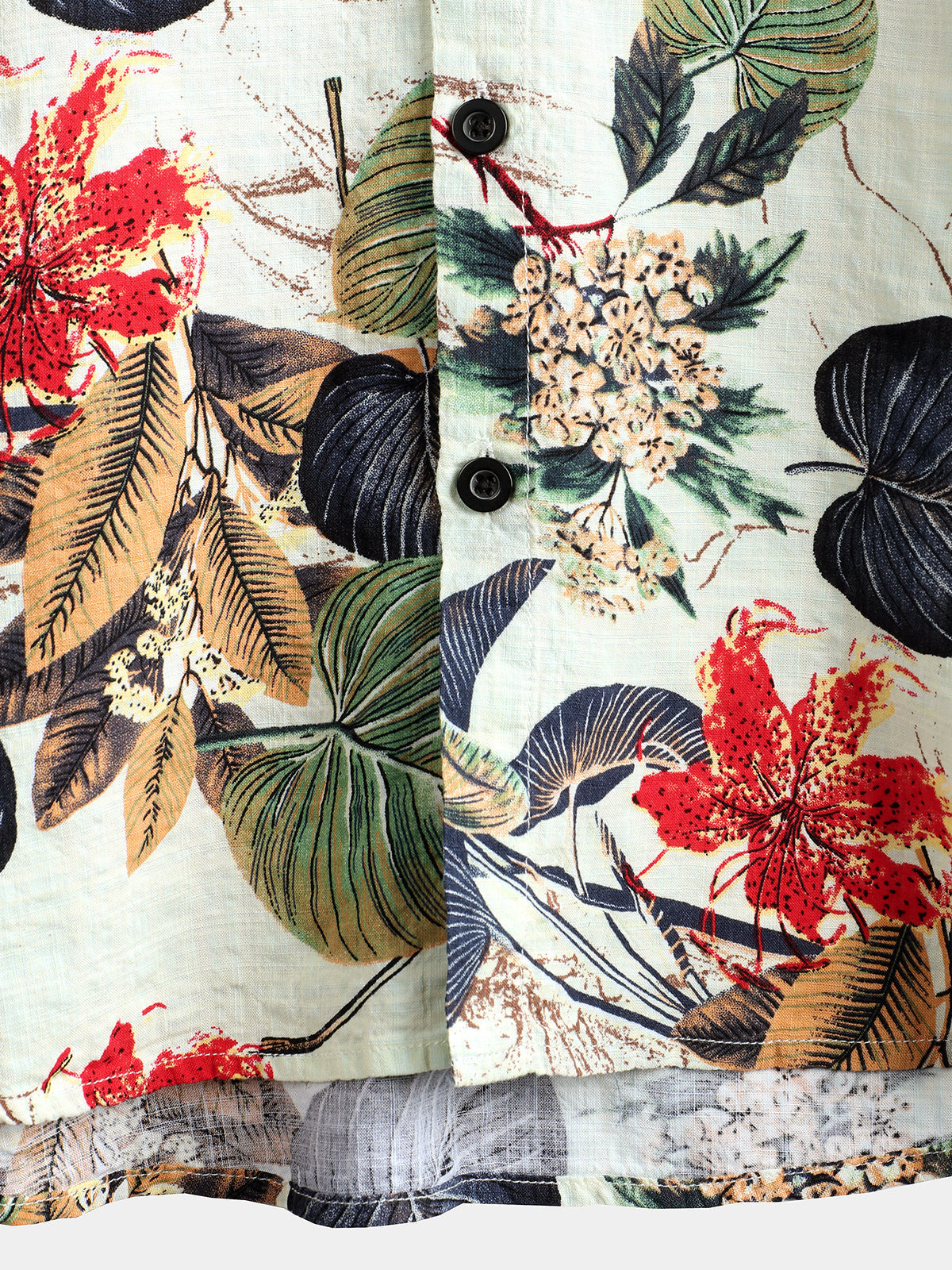 Chemise à manches courtes en coton à imprimé floral pour hommes