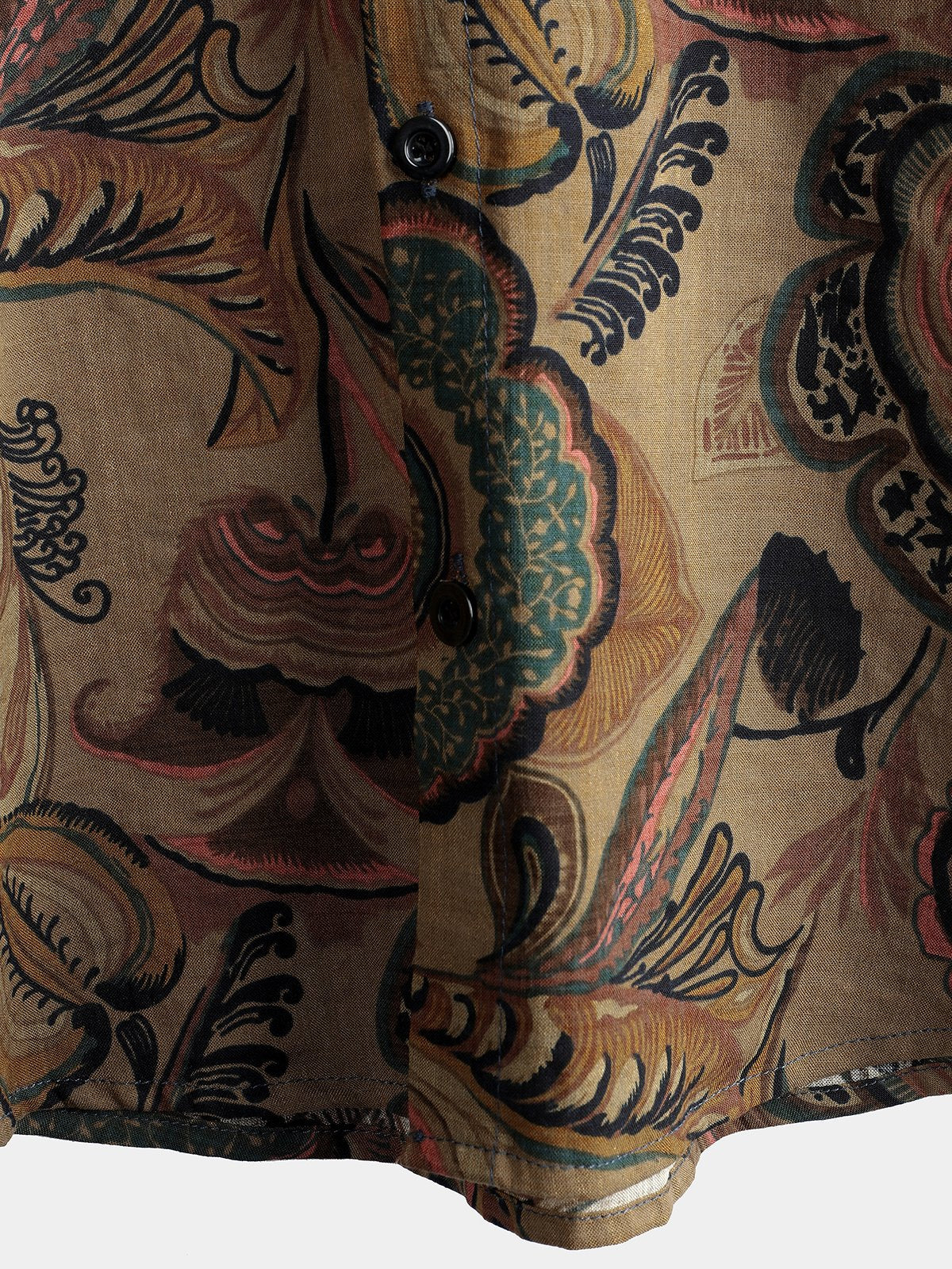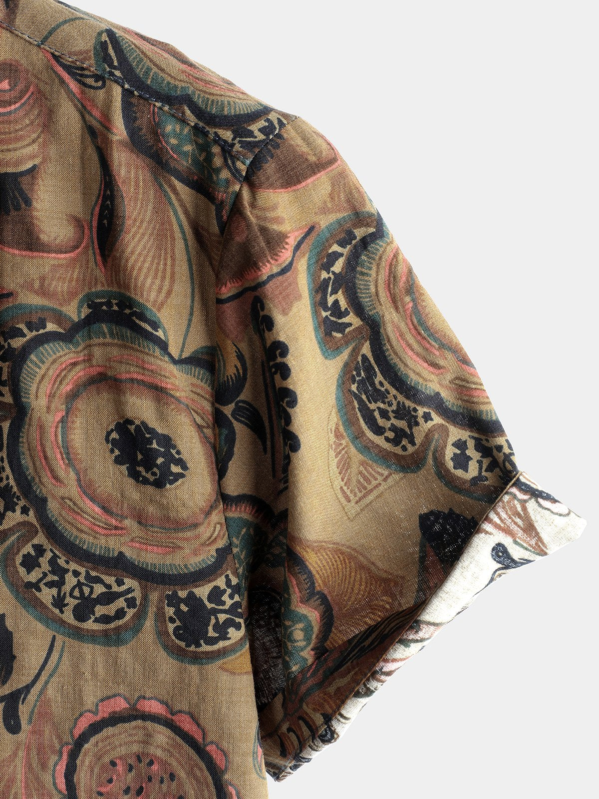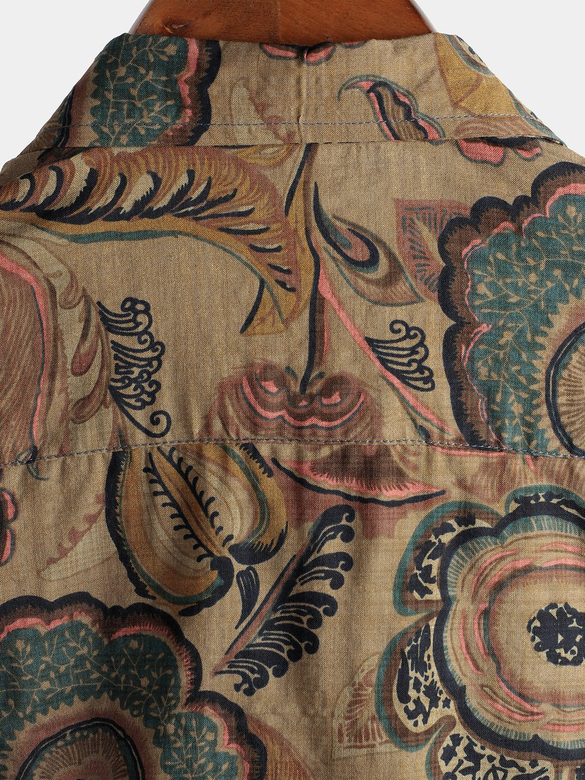 Chemise décontractée à manches courtes pour hommes, motif floral marron