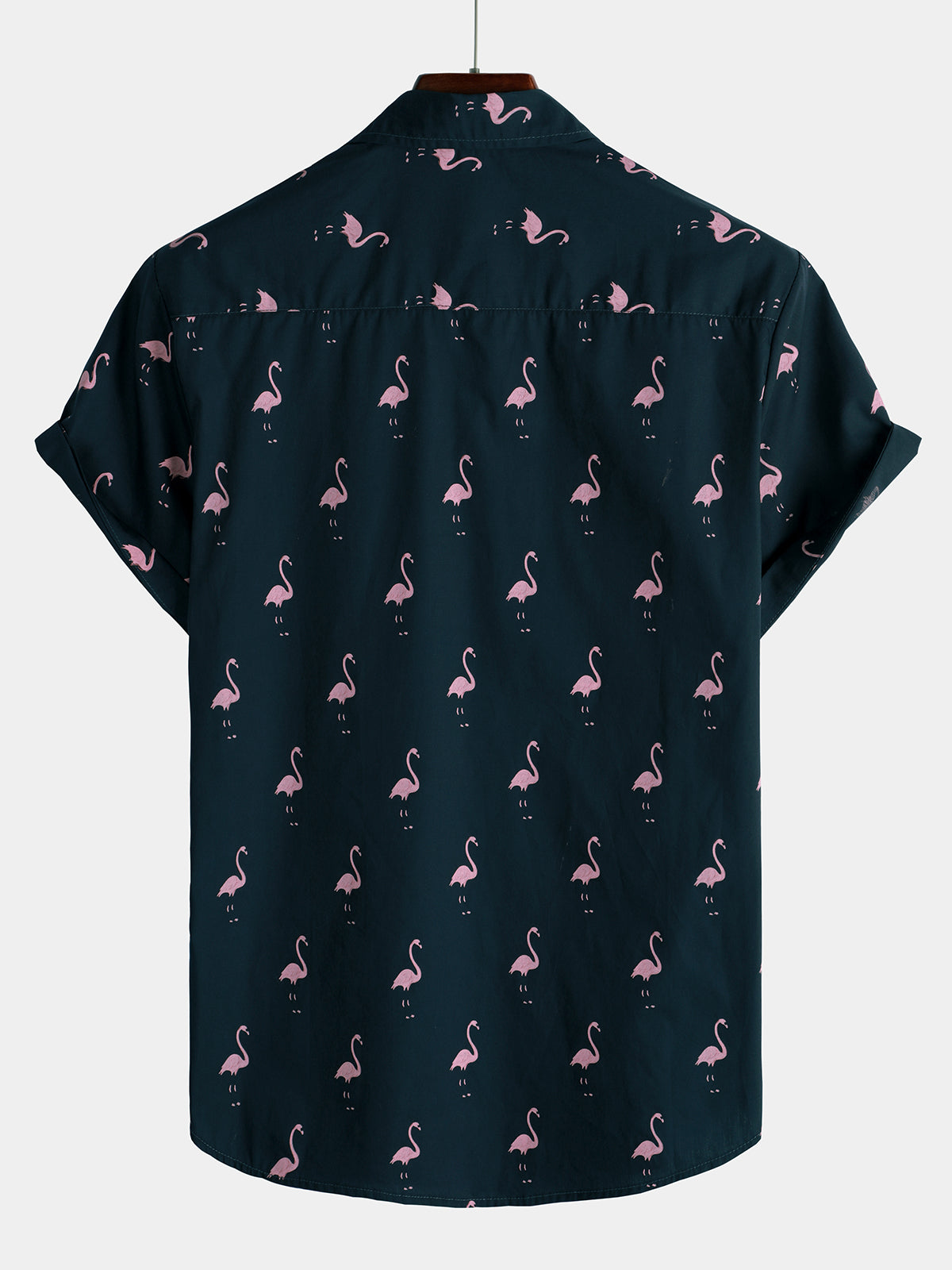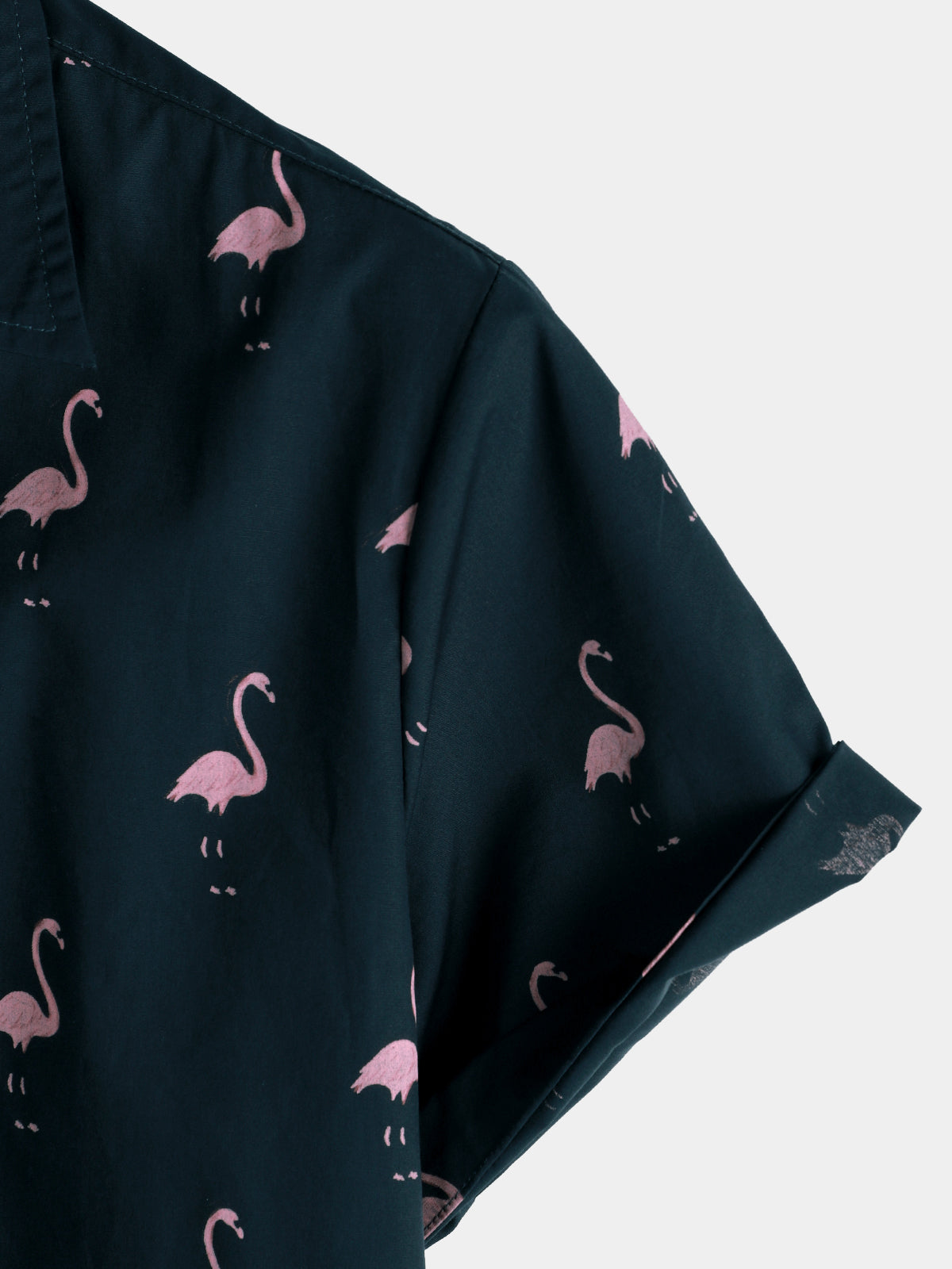 Chemise d'été pour hommes avec imprimé flamant rose à manches courtes