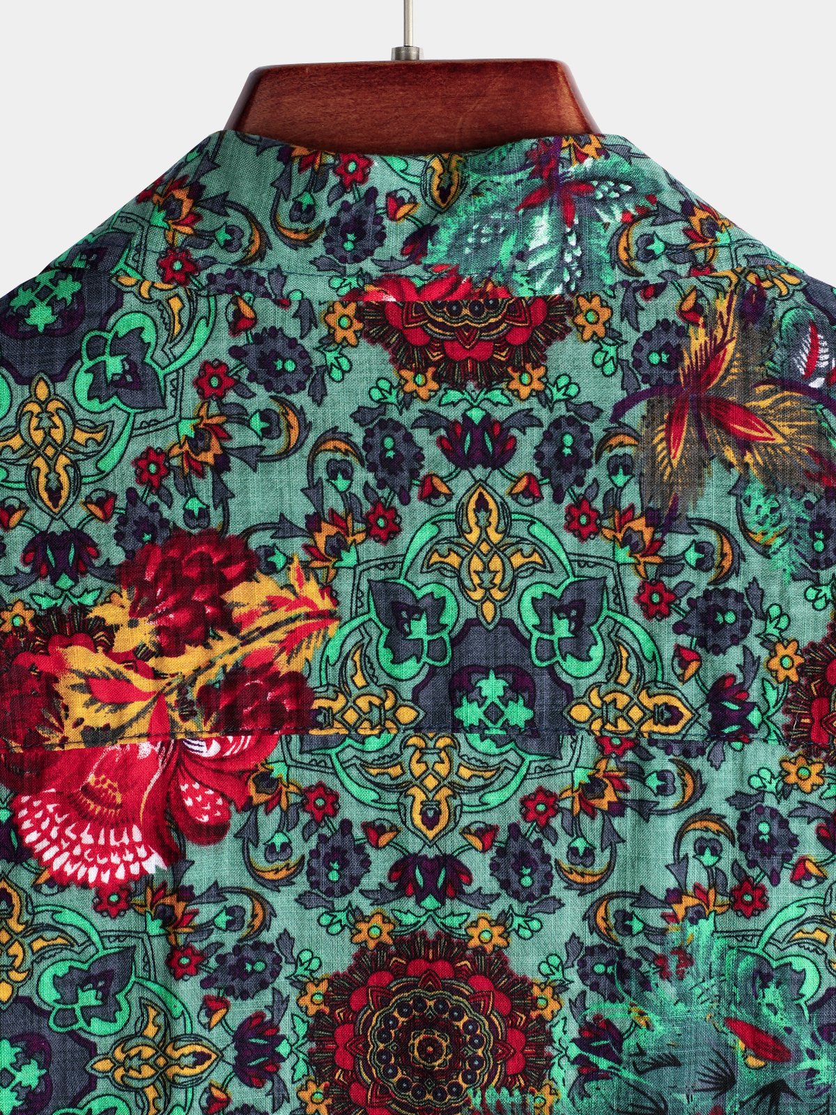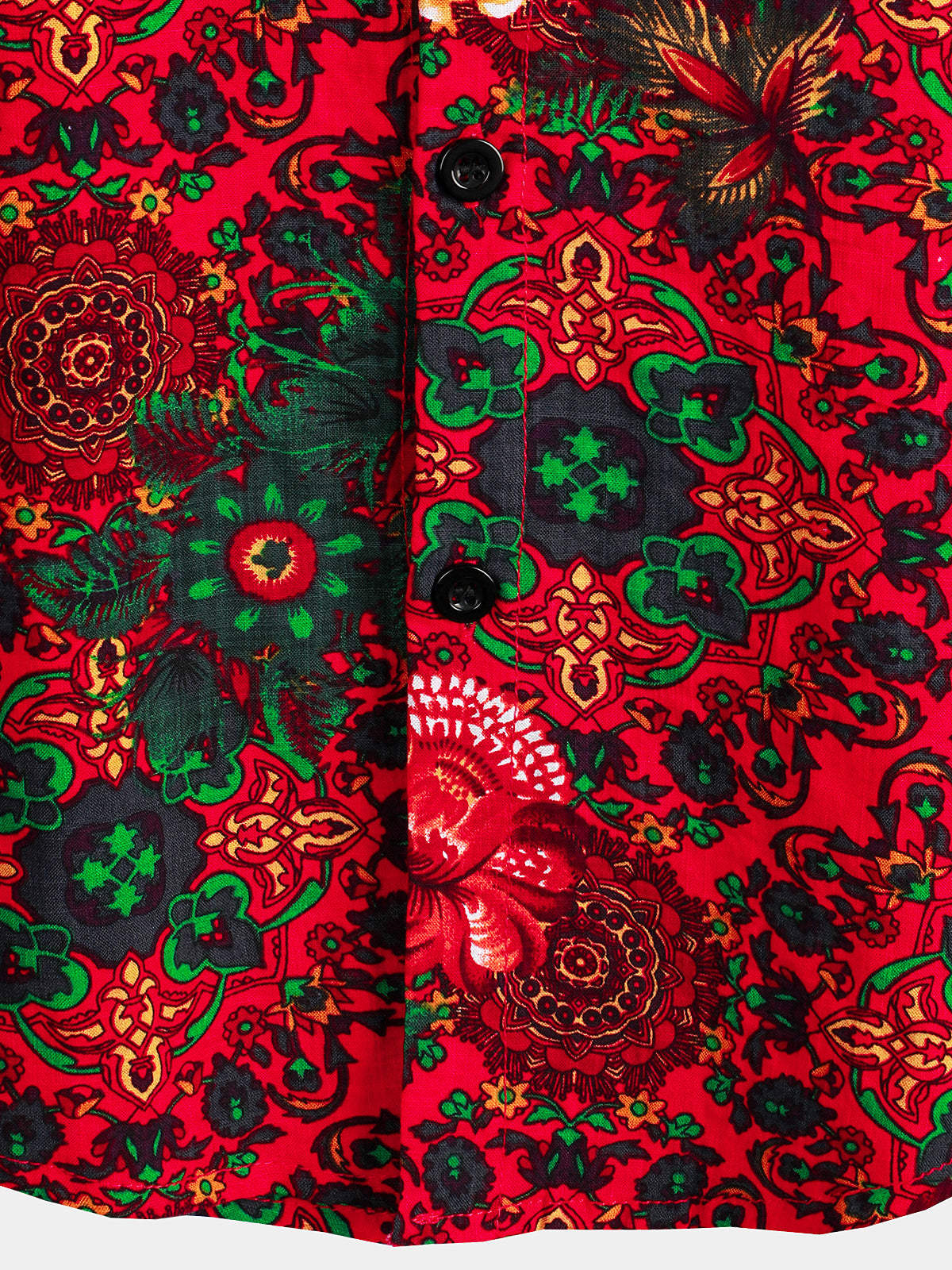 Chemise en coton pour hommes à manches courtes motif floral vert