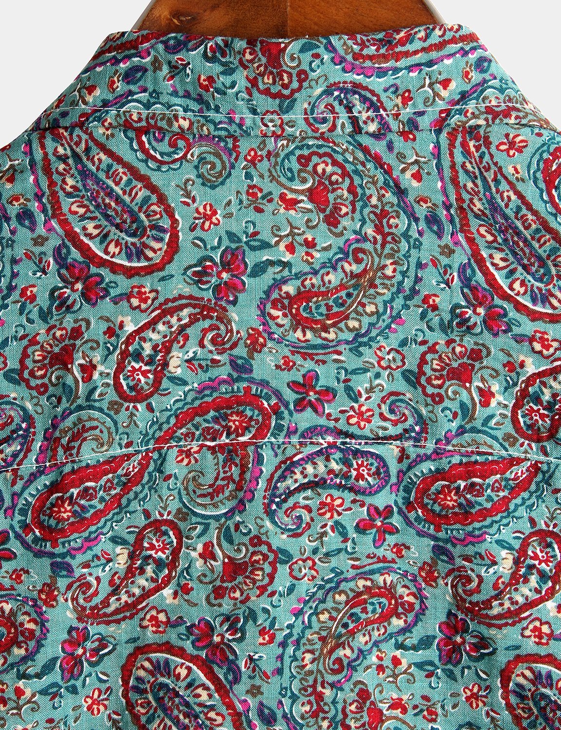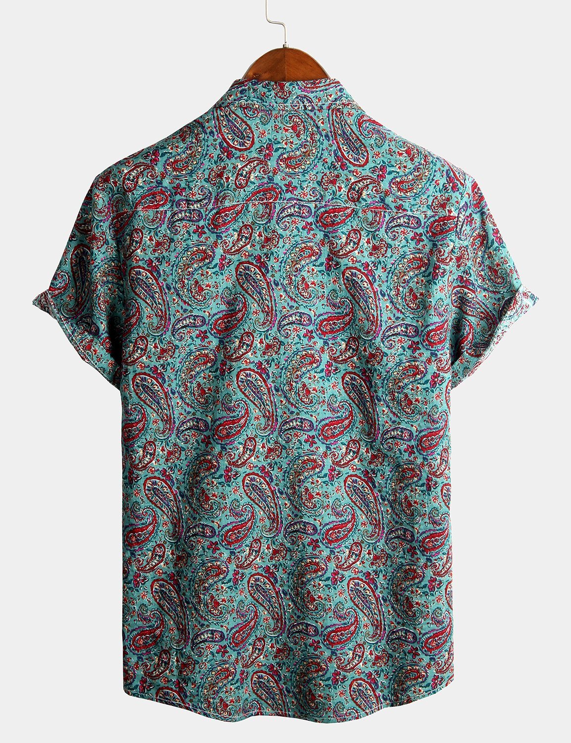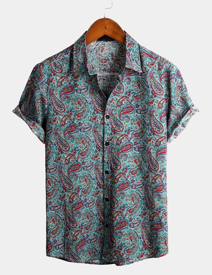 Chemise rétro d'été pour hommes en paisley à manches courtes