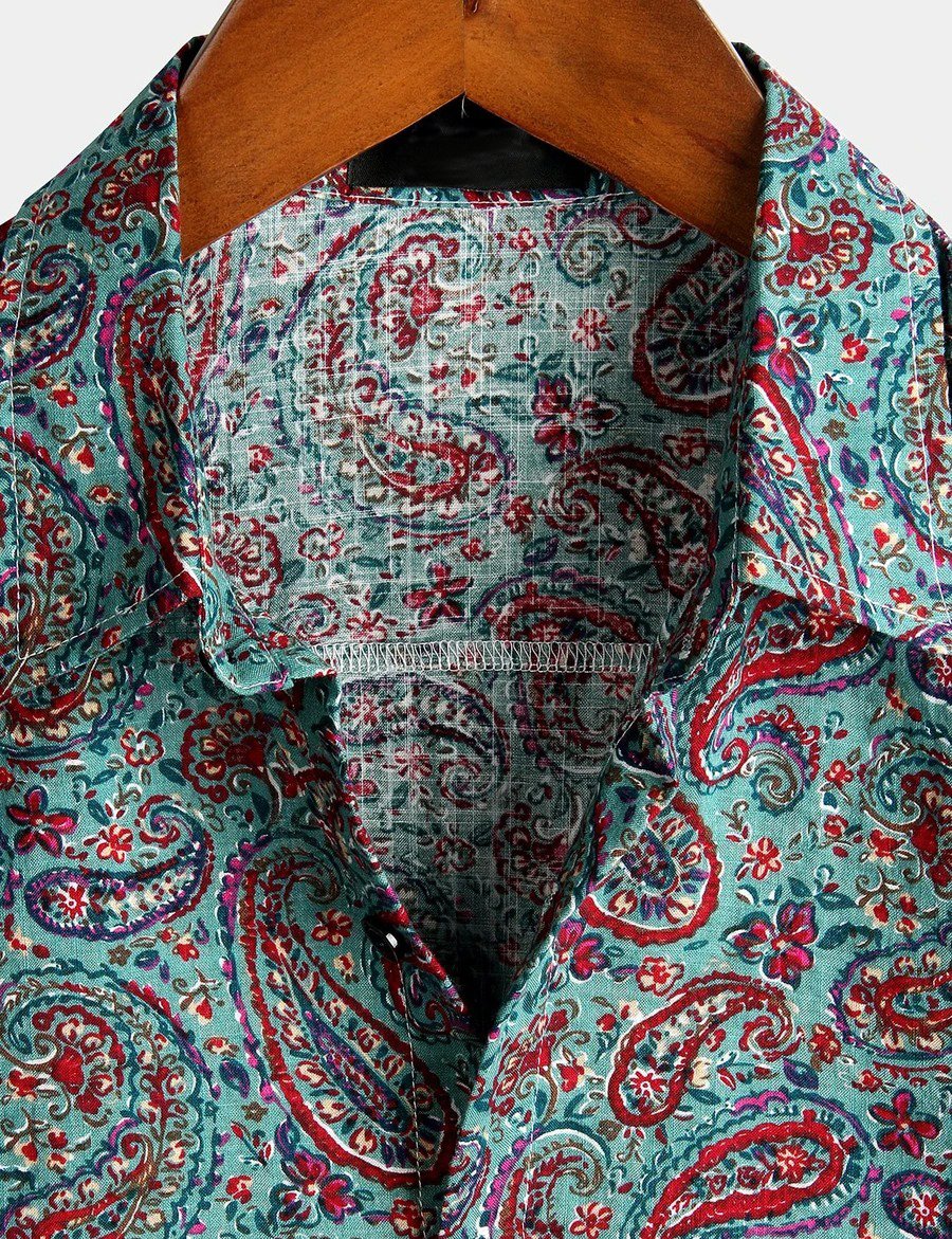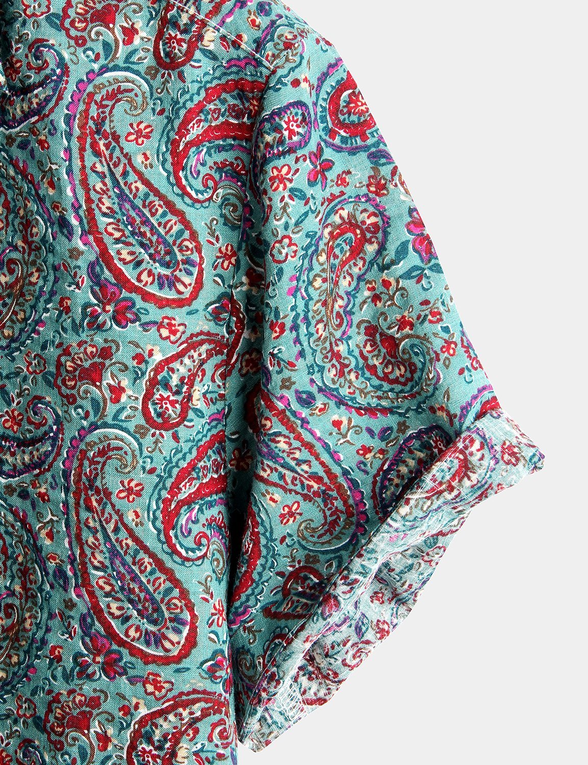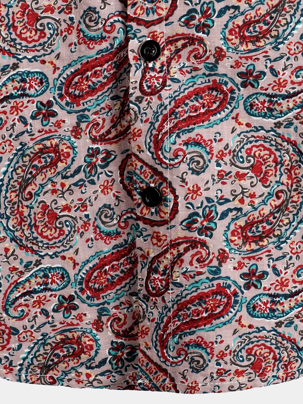 Chemise rétro d'été pour hommes en paisley à manches courtes
